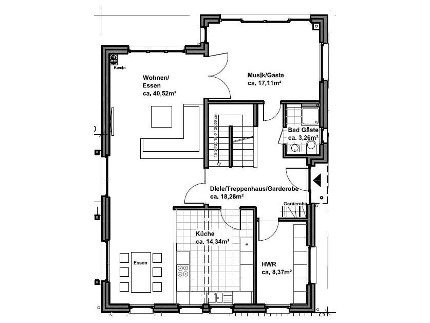Der abgebildete Architektenhaus-Grundriss wird selbstverständlich im Rahmen unserer Planungsleistung an Ihre Bedürfnisse / Grundstücksvorgaben angepasst.