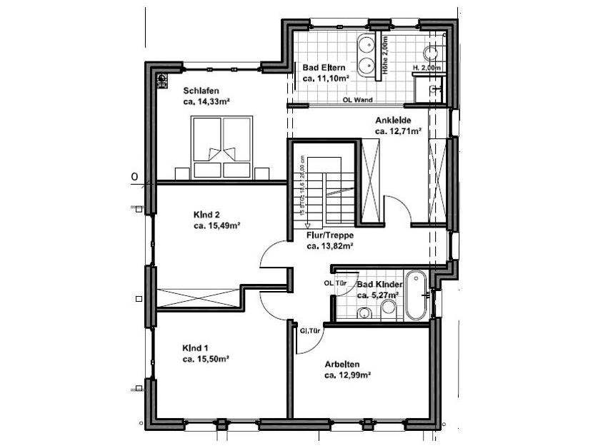 Der Preis für dieses Architektenhaus mit über 200 m² Wohnfläche, 3 Kinderzimmern, Schlafzimmer mit Ankleide und eigenem Bad, das wir für Sie individuell als Architektenhaus im Energieeffizienz-Haus Standard bauen, beginnt ab 518.500 €.