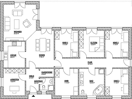 Grundriss Bungalow 150 qm - Bungalow Massivhaus bauen in Hamburg, Kiel