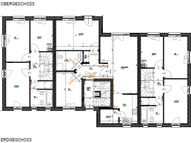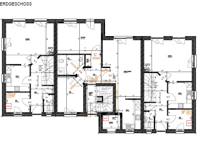 Der abgebildete Mehrfamilienhaus-Grundriss wird selbstverständlich im Rahmen unserer Planungsleistung an Ihre Bedürfnisse / Grundstücksvorgaben angepasst.
