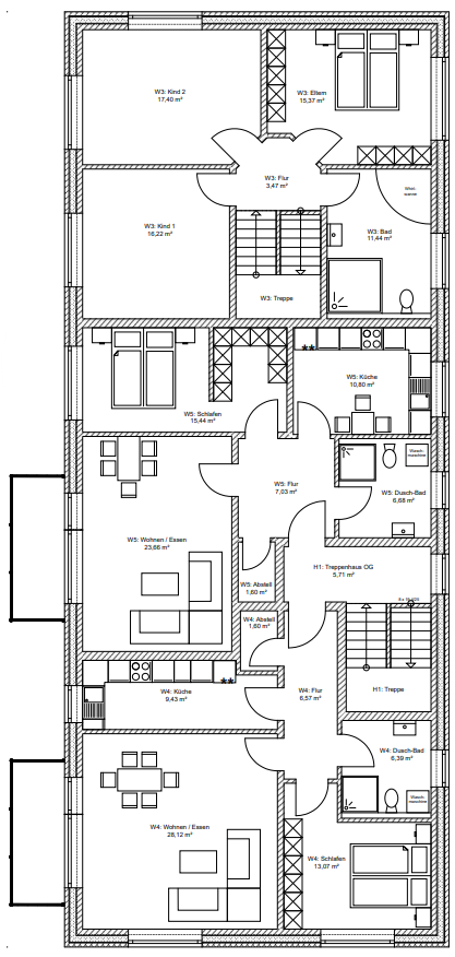 Dieses Mehrfamilienhaus mit 4 Wohnungen bauen wir mit über 400 m² Grundriss und schlüsselfertig in Hamburg, Kiel, Neumünster, Norderstedt und im restlichen Schleswig-Holstein. Jeden Mehrfamilienhaus Grundriss werden wir für Sie individuell entwerfen, so dass all Ihre Wünsche für Ihr modernes Mehrfamilienhaus erfüllt werden.
