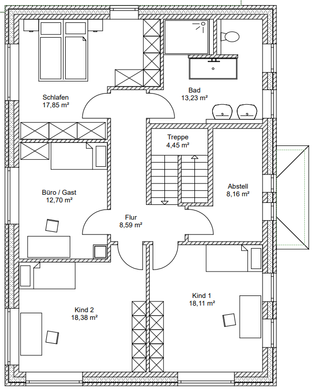 Der abgebildete Stadtvilla-Grundriss wird selbstverständlich im Rahmen unserer Planungsleistung an Ihre Bedürfnisse / Grundstücksvorgaben angepasst.